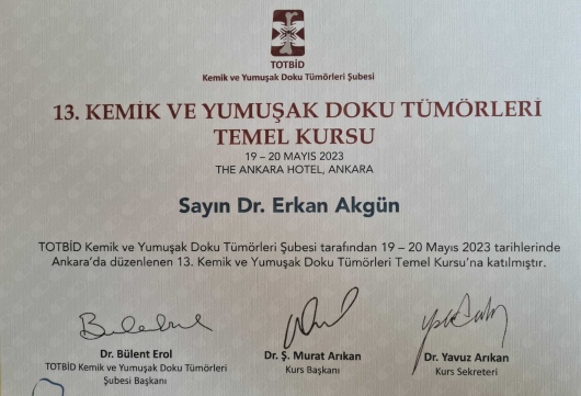 13 Aktaşoğlu YE, Akgün E,Emet AS. Vaskuler Komplikasyonlu Proksımal Tibial Osteokondroma:Vaka Sunumu.(2023) Kemik Eklem Kongresi.