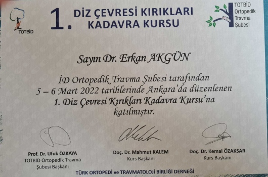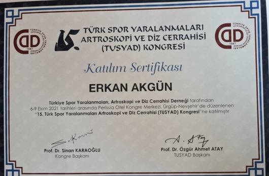 3- Demirdöğen, M., Oğuz, T., Bektaşer, B., Tolunay, T., Oğur, H., & Akgün, E. Aktif sporcularda otogreft BTB yöntemiyle artroskopik acl rekonstrüksiyon sonuçlarımız.