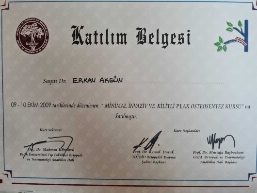 - • Ankara Atatürk Eğt. ve Arş. Hast. Ortopedi ve Travmatoloji Kliniği, Ankara (Uzmanlık Eğitimi); 2005 - 2010